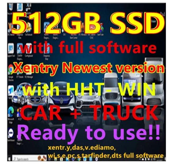 Phần mềm chẩn đoán Xentry đầy đủ mới nhất 2023.09 trên ổ SSD 512GB cho MB STAR C4 C5 C6 SD Connect, phần mềm Xentry đầy đủ, sẵn sàng sử dụng.